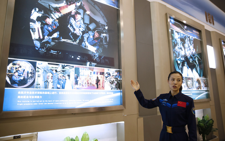 王亞平在中國(guó)航天員科研訓(xùn)練中心內(nèi)回答記者提問(2016年11月17日攝)。新華社發(fā)(曹江濤攝)