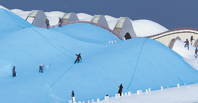 3月15日,第十八屆世界中學(xué)生運(yùn)動會主會場福建晉江市第二體育中心各個場館及室外工程均已全部復(fù)工。圖為工人在進(jìn)行主場館外立面施工。邵玉姿 董嚴(yán)軍攝影報道