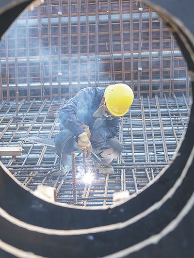 3月6日,工人在位于山西晉中市榆次區(qū)的太焦高鐵晉中特大橋項(xiàng)目施工現(xiàn)場作業(yè)。新華社記者 楊晨光攝