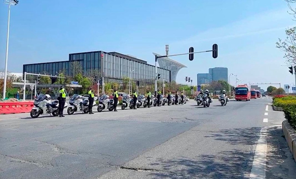 車輛沿途經(jīng)過(guò)的主要路口均有民警輔警現(xiàn)場(chǎng)值守