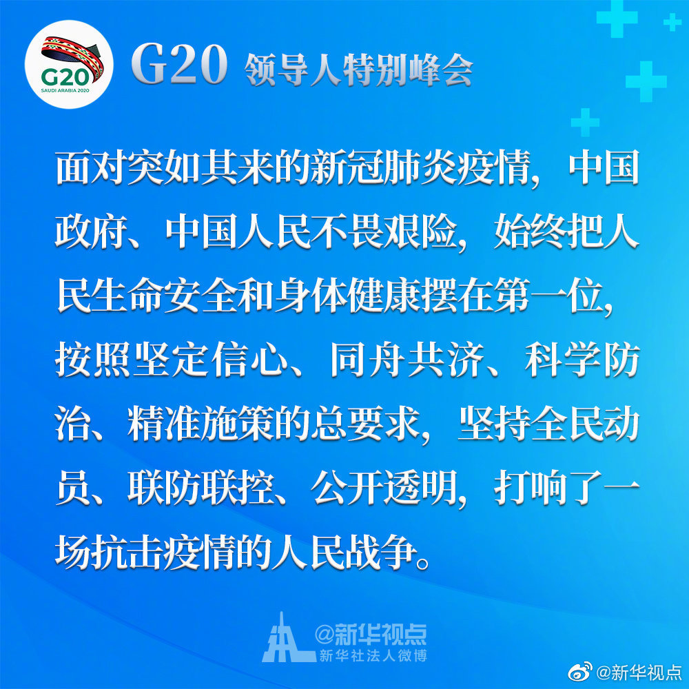 3月26日晚,國(guó)家主席習(xí)近平出席二十國(guó)集團(tuán)領(lǐng)導(dǎo)人應(yīng)對(duì)新冠肺炎特別峰會(huì)并發(fā)表重要講話。一起來(lái)看金句? ?????