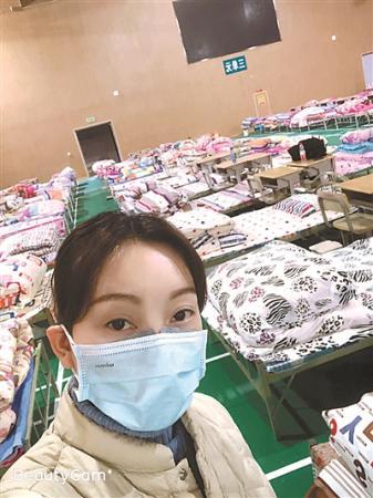 武漢病例暴增期間,各區(qū)的體育館開(kāi)始改建成為方艙醫(yī)院。開(kāi)院前大量的準(zhǔn)備工作都需要人手,靳官萍就成為了其中一員?!拔胰サ氖呛樯襟w育館,第一批的三個(gè)方艙醫(yī)院之一?!?8小時(shí)之內(nèi)就要把空曠的體育館改建成擺滿病床的醫(yī)院,志愿者們的壓力也不小。靳官萍負(fù)責(zé)鋪電熱毯、整理床單被套和患者的一人份生活用品,讓每個(gè)病人來(lái)了就能住下。