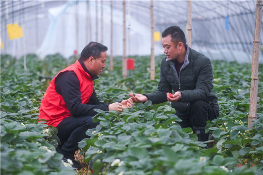 農(nóng)技人員(左)在對種植戶進行技術(shù)指導(dǎo) 徐昱 攝