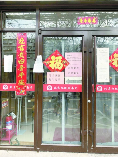 北京一小區(qū)內(nèi),養(yǎng)老照料中心貼出暫停接待的通知。
