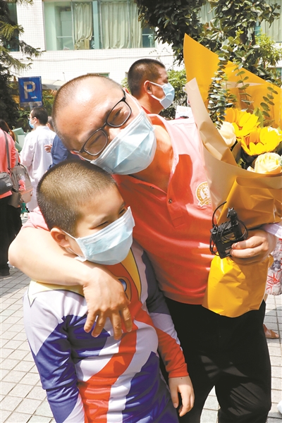 “兒子,爸爸打贏怪獸回來了!快來抱一個!”醫(yī)療隊(duì)員、“廣州實(shí)力中青年醫(yī)生”王川副主任醫(yī)師給9歲的兒子力力一個大大的擁抱。因?yàn)樵诔稣鲀x式上拿出兒子的奧特曼卡表達(dá)戰(zhàn)“疫”決心,這位內(nèi)分泌疾病專家在網(wǎng)絡(luò)上意外走紅,被網(wǎng)友稱為“奧特曼”爸爸。不過,這張奧特曼卡不小心遺失在武漢了。當(dāng)天,力力特意穿了一件奧特曼衣服,帶著兩張全新的奧特曼卡,和媽媽一起來迎接爸爸回家?!拔也辉诩业倪@段時間,感覺孩子變得更懂事了?!蓖醮ㄕf道,“回家第一件事,我想給他們母子倆做一頓飯吃?!?/p>