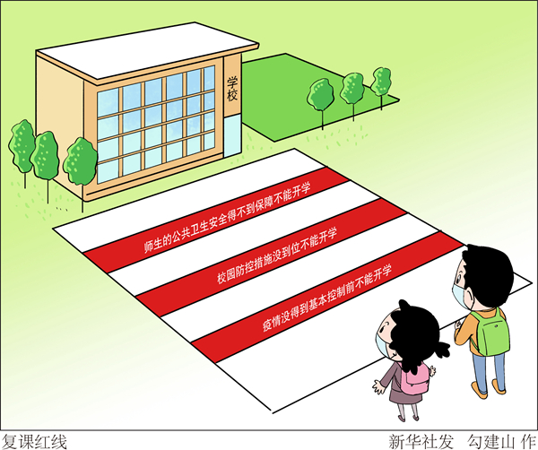 答:有3條紅線:疫情沒得到基本控制前不能開學(xué),校園防控措施沒到位不能開學(xué),師生的公共衛(wèi)生安全得不到保障不能開學(xué)。在逐步恢復(fù)教育教學(xué)正常秩序的過程中,需要不斷調(diào)整、不斷總結(jié)。這個(gè)過程不能“一刀切”,廣大師生的健康安全是第一位的,要根據(jù)各地各校能夠提供的疫情防控條件來決定,否則寧愿往后推遲開學(xué)復(fù)課時(shí)間。
