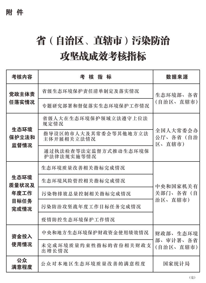《?。ㄗ灾螀^(qū)、直轄市)污染防治攻堅戰(zhàn)成效考核措施》全文如下。