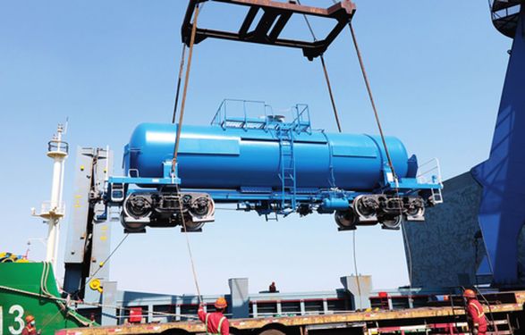 中車齊齊哈爾車輛有限公司出口韓國(guó)的濃硫酸罐車準(zhǔn)備啟程發(fā)運(yùn)(4 月 8 日攝) 宮巖攝 / 本刊