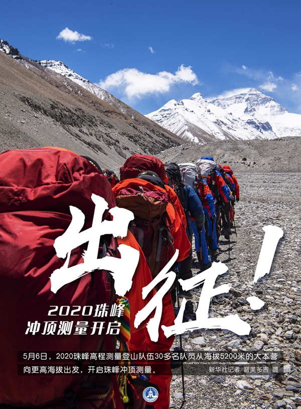 6日,2020珠峰高程測量行動測量登山隊(duì)舉行出發(fā)儀式,30多名計(jì)劃登頂?shù)臏y量登山隊(duì)員當(dāng)日從海拔5200米的珠峰登山大本營向更高海拔出發(fā),計(jì)劃抓住近日的天氣窗口,擇日登頂測量。如果成功,這將成為我國專業(yè)測繪人員首次登頂珠峰測高。