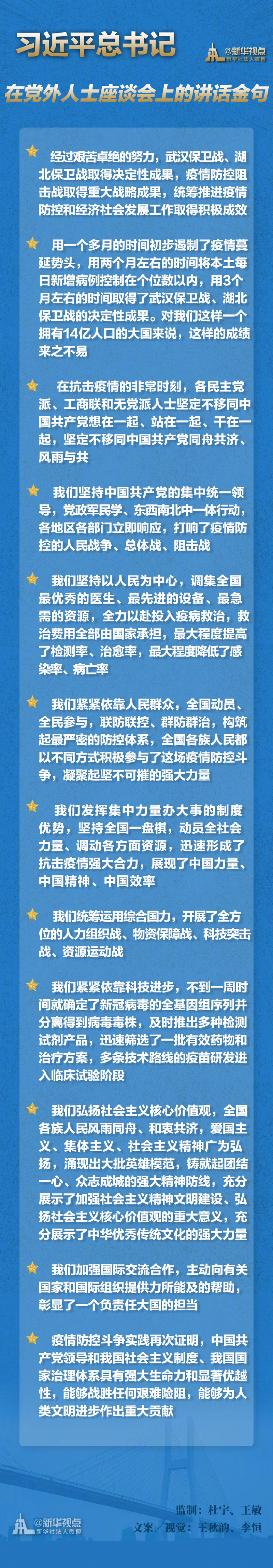 5月8日,中共中央在中南海召開黨外人士座談會,就新冠肺炎疫情防控工作聽取各民主黨派中央、全國工商聯(lián)和無黨派人士代表的意見和建議。在會上,習近平總書記的重要講話鼓舞人心! ?????