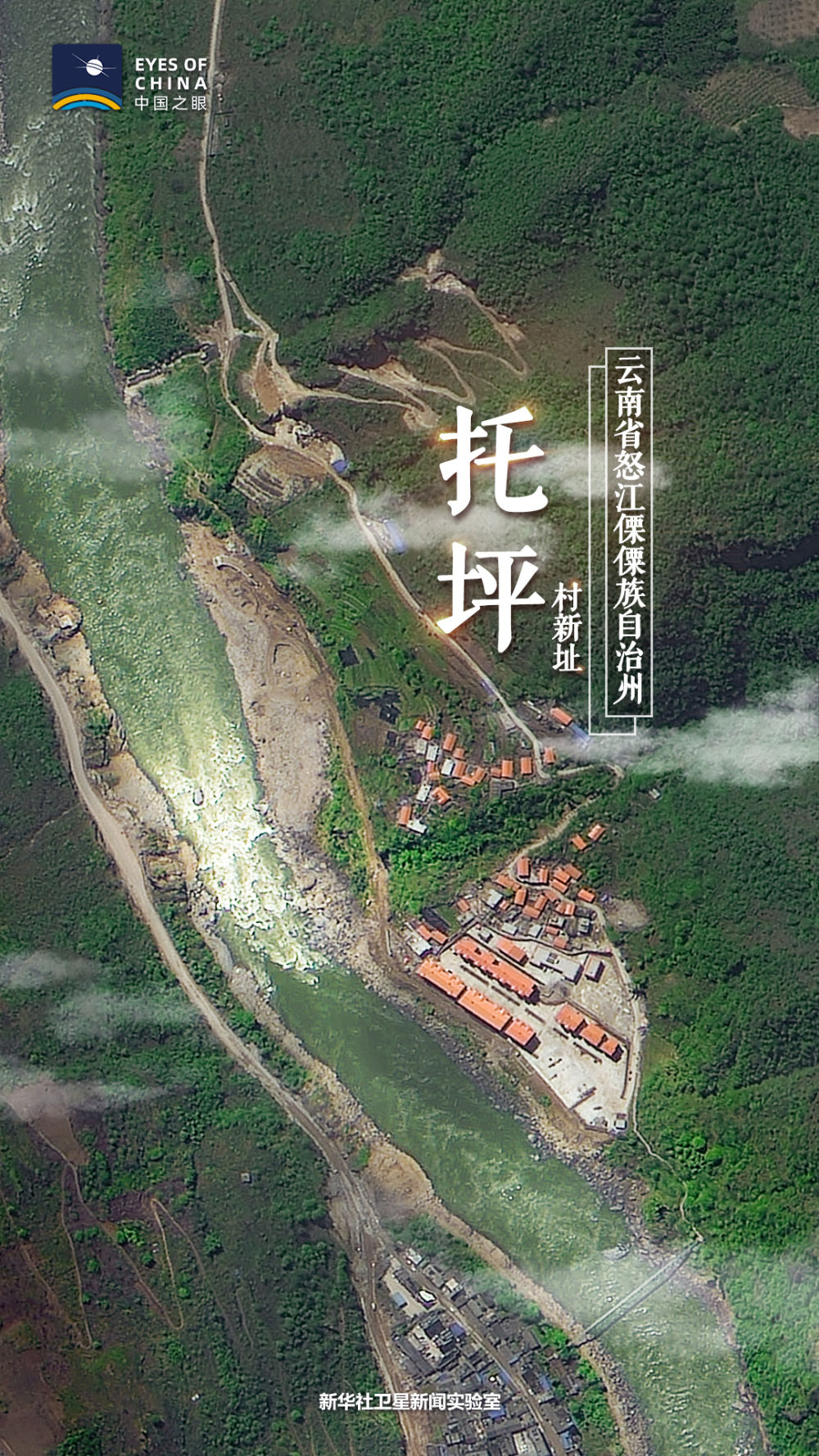 從衛(wèi)星上看,托坪村舊址逐漸“消失”,與高黎貢山的綠色融為了一體。