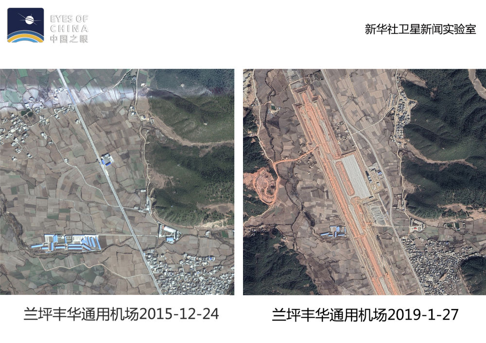 ↑衛(wèi)星記錄了蘭坪豐華通用機(jī)場(chǎng)從無(wú)到有的建設(shè)過(guò)程。