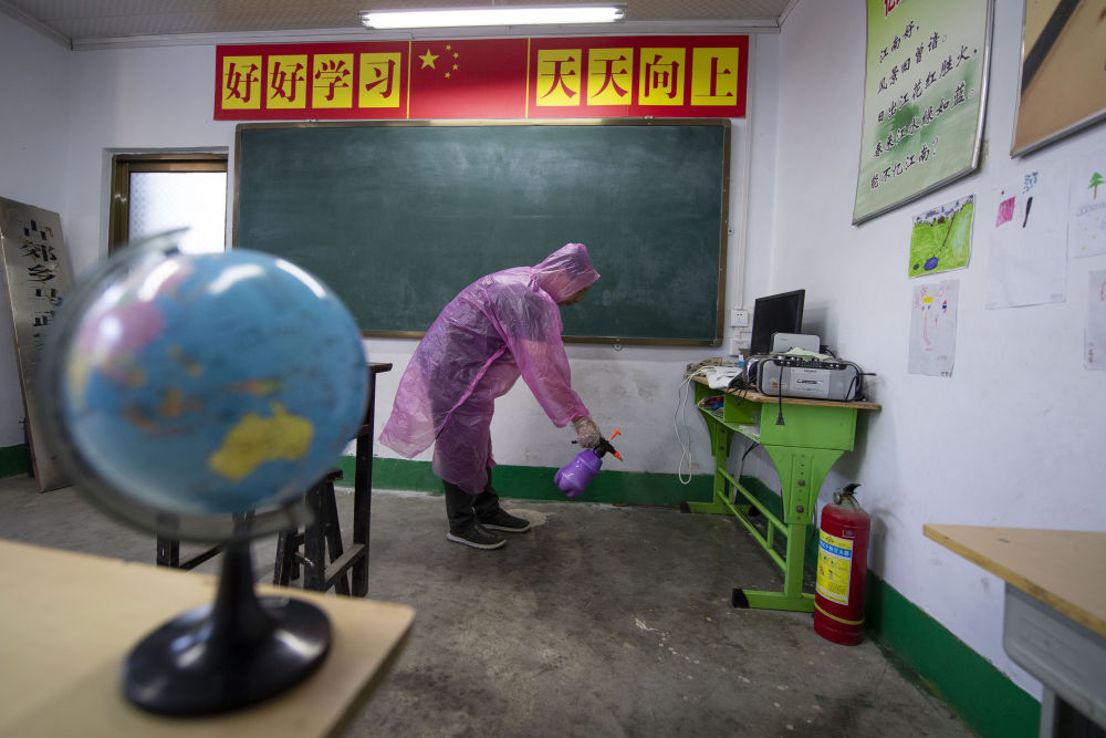 開學(xué)前兩周,學(xué)校老師在當(dāng)?shù)匦l(wèi)生院的指導(dǎo)下,對(duì)校內(nèi)教室、宿舍、食堂等地進(jìn)行消殺和通風(fēng)。
