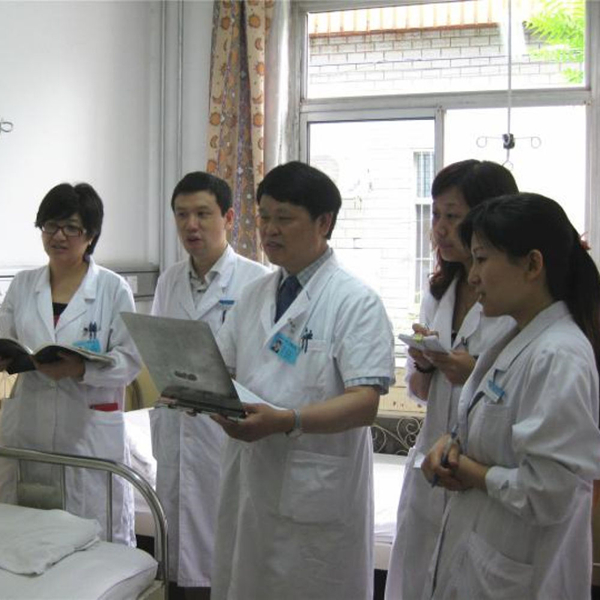 中國醫(yī)學(xué)科學(xué)院腫瘤醫(yī)院徐兵河教授(右三)、馬飛教授(右四)攜治療團(tuán)隊在病房查問病人康復(fù)情況。(圖片由受訪者提供)