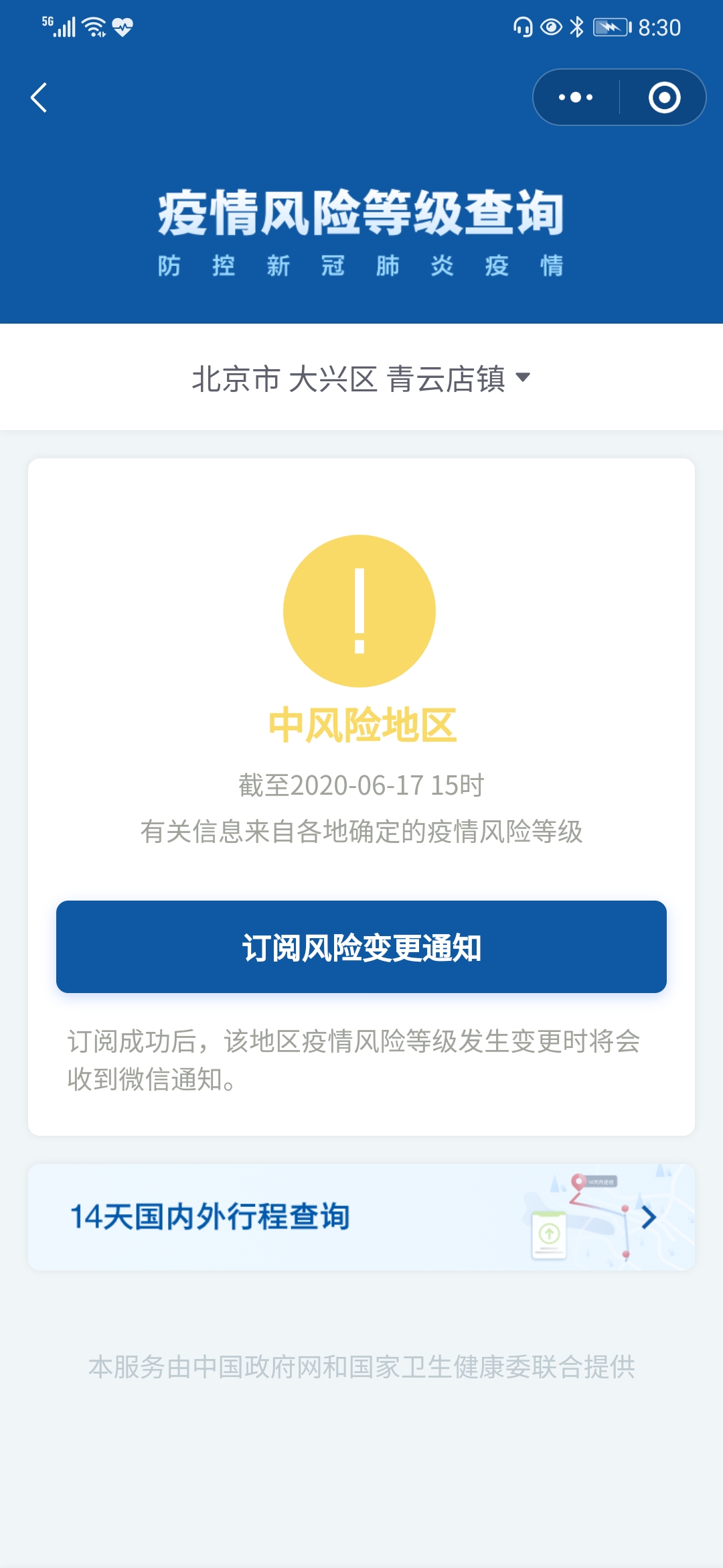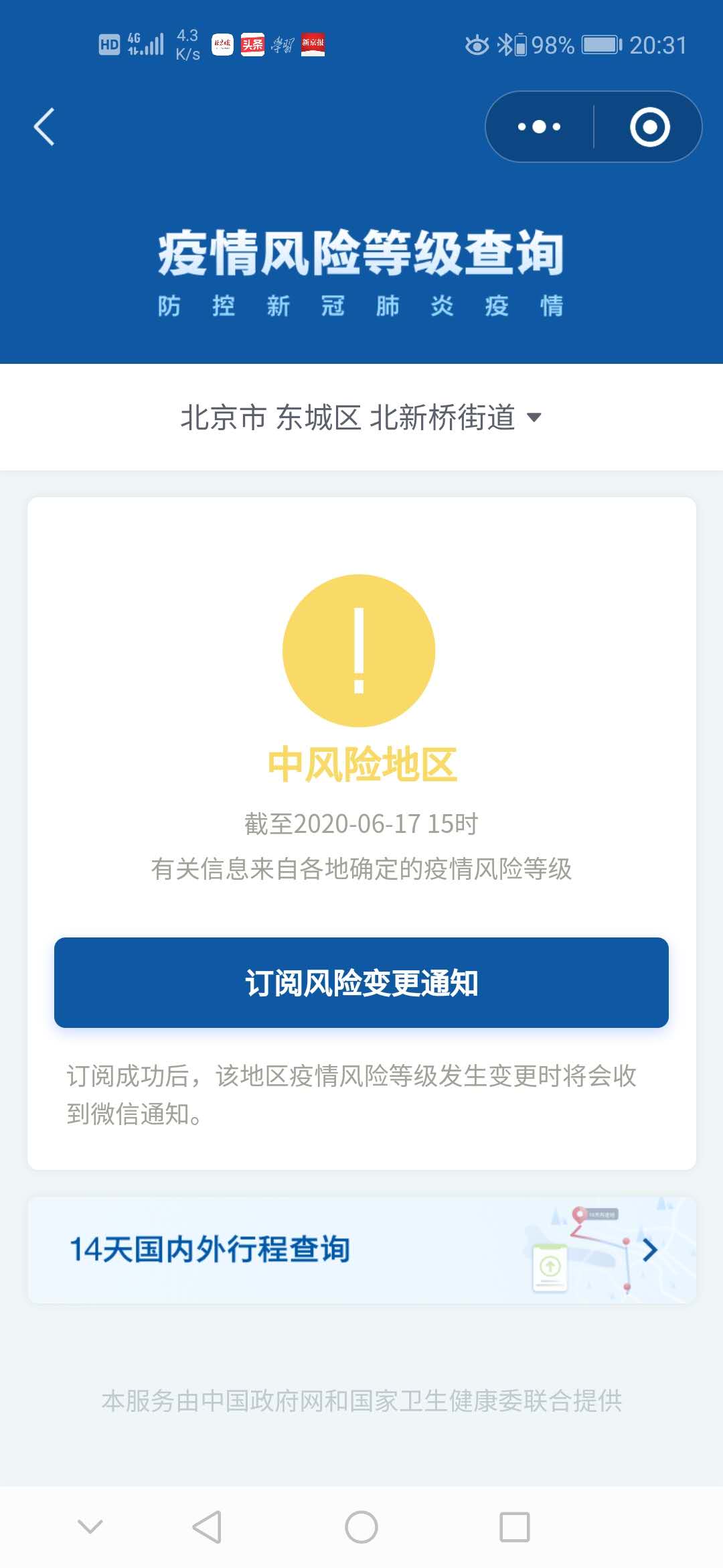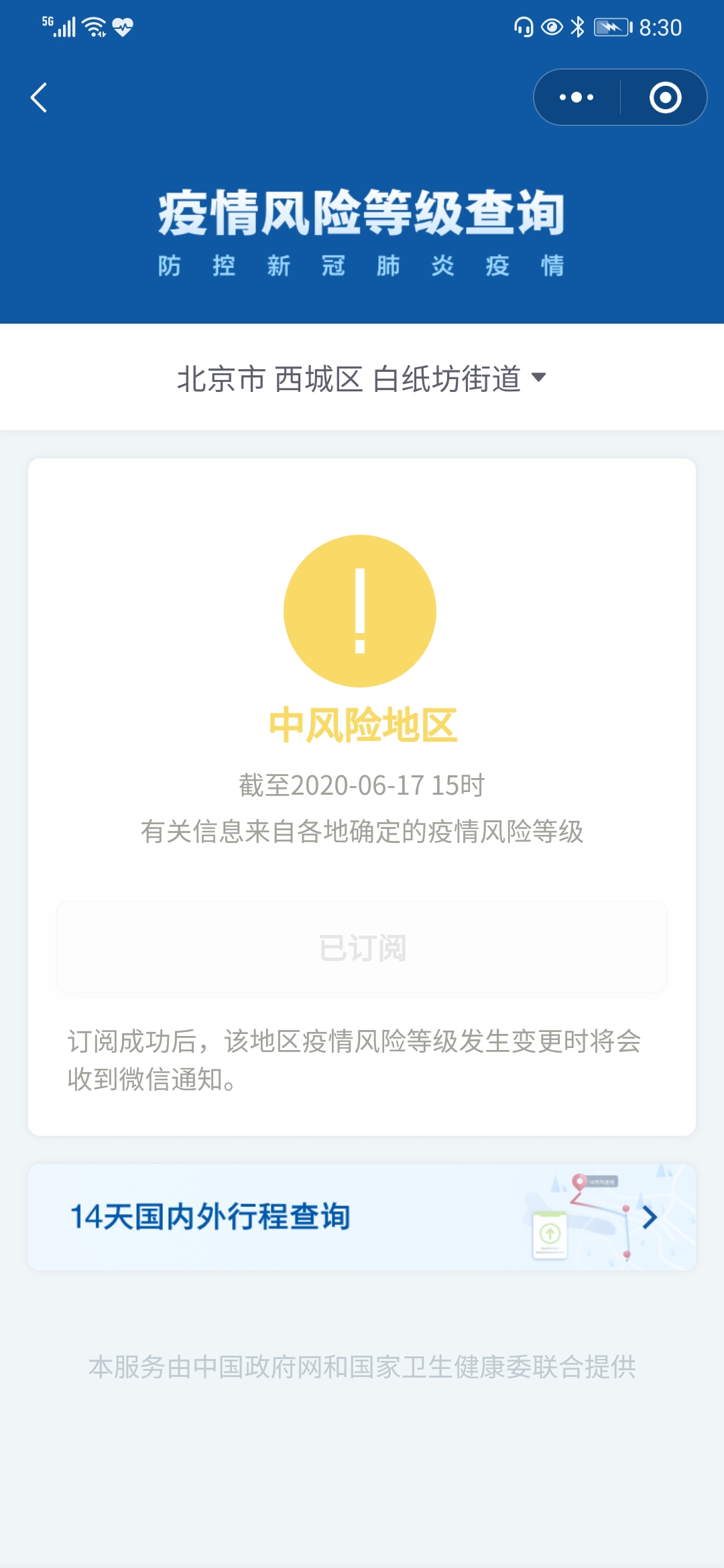 記者從國(guó)務(wù)院客戶(hù)端疫情風(fēng)險(xiǎn)查詢(xún)小程序上了解到,截至6月17日15時(shí),北京市又有5個(gè)街道升級(jí)為中風(fēng)險(xiǎn)地區(qū),分別為東城區(qū)和平里街道、北新橋街道,豐臺(tái)區(qū)長(zhǎng)辛店街道,大興區(qū)青云店鎮(zhèn),西城區(qū)白紙坊街道。目前,本市已經(jīng)有32個(gè)街鄉(xiāng)鎮(zhèn)升級(jí)為中風(fēng)險(xiǎn)地區(qū),另有豐臺(tái)花鄉(xiāng)地區(qū)為高風(fēng)險(xiǎn)地區(qū),涉及豐臺(tái)區(qū)、大興區(qū)、海淀區(qū)、西城區(qū)、房山區(qū)、東城區(qū)、石景山區(qū)、朝陽(yáng)區(qū)、門(mén)頭溝區(qū)9個(gè)區(qū)。