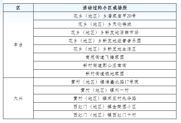 北京疾控中心公布6月16日0時(shí)至24時(shí),我市新增新冠肺炎確診病例31例,病例活動(dòng)過(guò)的小區(qū)或場(chǎng)所具體信息如下: