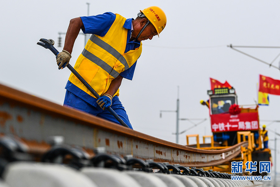 6月12日,中鐵十一局的工程人員在進(jìn)行500米長軌落槽作業(yè)。 新華社記者 李博 攝(資料圖)