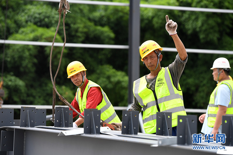6月9日,工人在位于重慶市巴南區(qū)的渝湘高鐵重慶段建設(shè)工地現(xiàn)場作業(yè)。 新華社記者 唐奕 攝(資料圖)