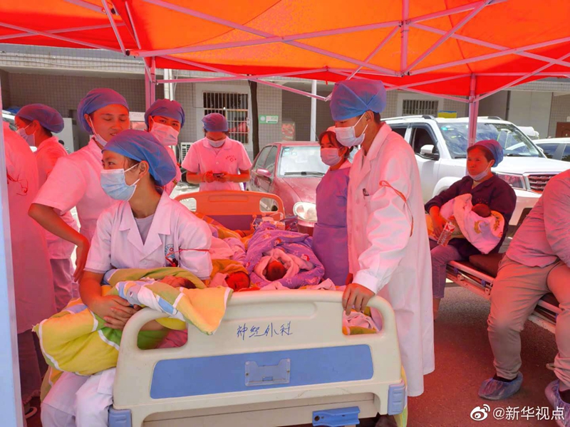 7月2日,貴州省畢節(jié)市赫章縣發(fā)生4.5級地震,震源深度13千米。地震襲來,當(dāng)不少人都往外疏散時,正在開展業(yè)務(wù)學(xué)習(xí)的赫章縣人民醫(yī)院新生兒科醫(yī)生們第一時間“逆行”病房,緊隨而來的還有實(shí)習(xí)生、急診科護(hù)士等。他們每人負(fù)責(zé)一個寶寶,抱著往外疏散,確保當(dāng)時在病房的26個新生寶寶平安撤離到安全地帶。致敬白衣天使?。ㄓ浾咄跣旅?、駱飛 圖片來源赫章縣人民醫(yī)院)