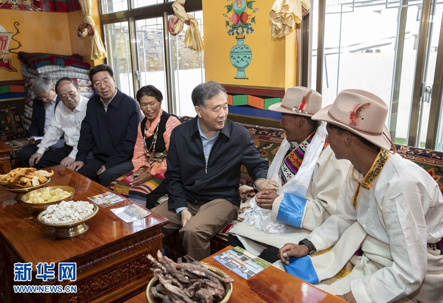 7月6日至8日,中共中央政治局常委、全國(guó)政協(xié)主席汪洋在西藏調(diào)研。這是7月6日,汪洋在日喀則桑珠孜區(qū)江當(dāng)鄉(xiāng)郭加新村易地扶貧搬遷集中安置點(diǎn)藏族搬遷群眾家中看望。 新華社記者 黃敬文 攝