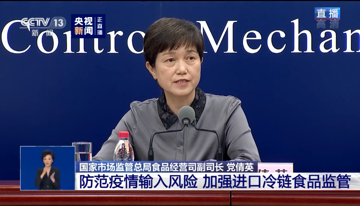 今天下午,國(guó)務(wù)院聯(lián)防聯(lián)控機(jī)制舉行發(fā)布會(huì),介紹防范疫情輸入風(fēng)險(xiǎn)、加強(qiáng)進(jìn)口冷鏈?zhǔn)称繁O(jiān)管有關(guān)信息。會(huì)上,市場(chǎng)監(jiān)管總局食品經(jīng)營(yíng)司副司長(zhǎng)黨倩英介紹。新冠肺炎疫情發(fā)生以來(lái),市場(chǎng)監(jiān)管部門針對(duì)重點(diǎn)產(chǎn)品、重點(diǎn)場(chǎng)所、重點(diǎn)環(huán)節(jié),進(jìn)一步完善相關(guān)監(jiān)管措施。