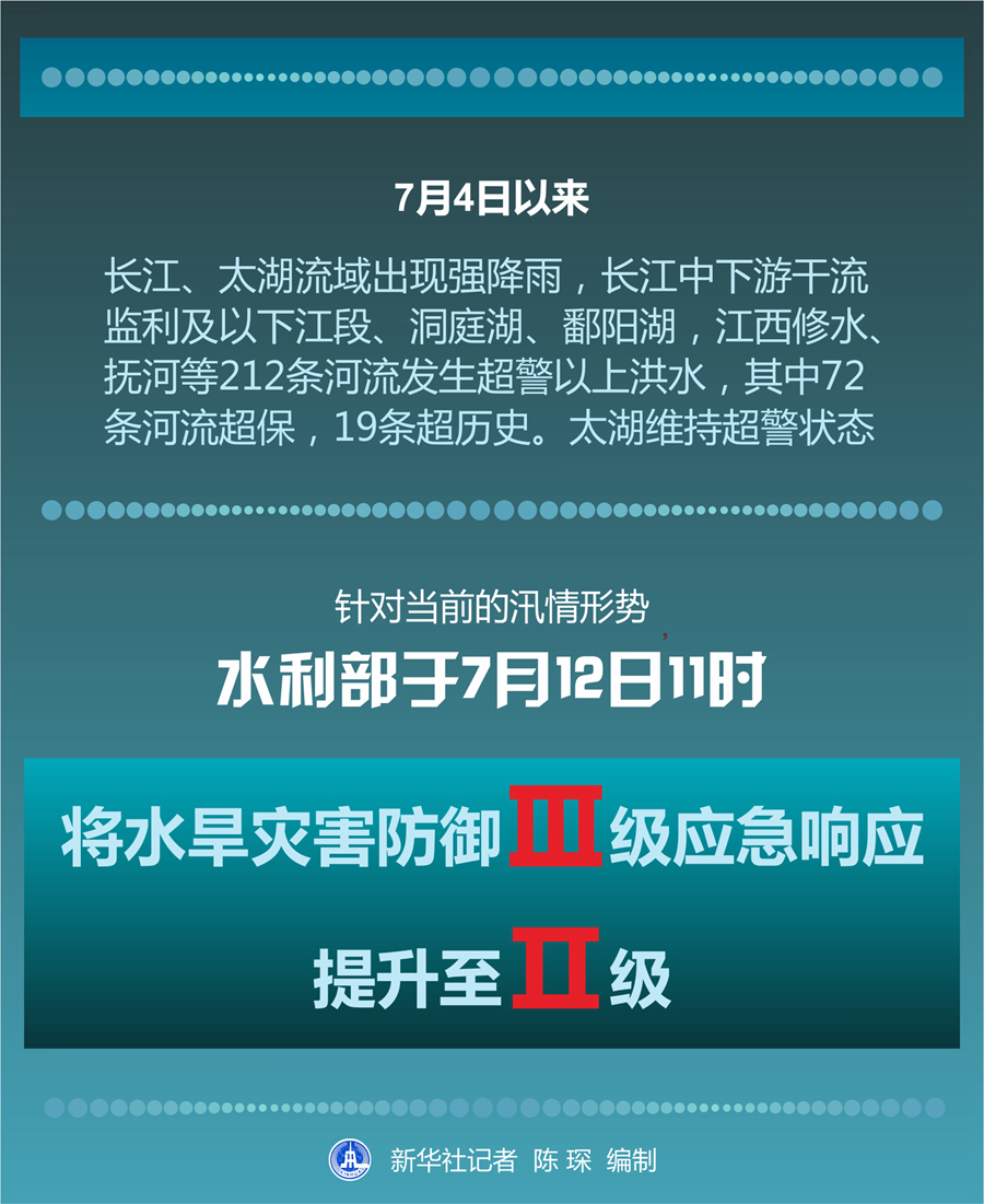 水利部有關負責人說,應急響應級別提升后,水利部將進一步加密水情監(jiān)測和滾動預報頻次,每天不定期進行會商研判,加大對長江、太湖流域的防汛指導力度。