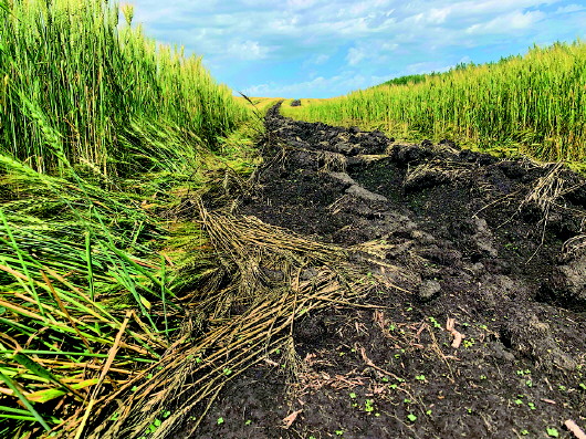 記者現(xiàn)場(chǎng)看到,陳巴爾虎旗特尼河林場(chǎng)大片大片麥田、油菜田里,被鏟出一道道觸目驚心、黑綠相間的“斑馬線”。“再有十多天就要收割了,現(xiàn)在毀了實(shí)在可惜!”附近群眾說(shuō)。