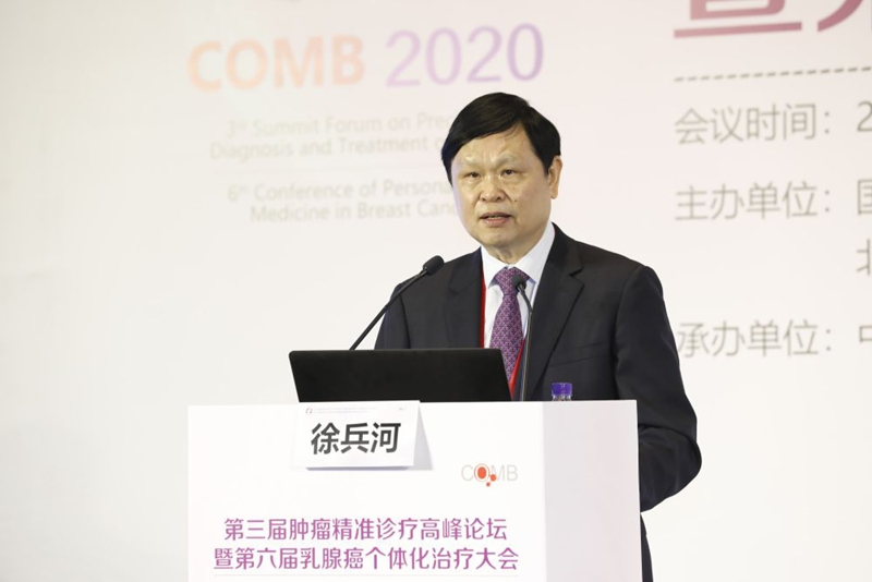 國家腫瘤質(zhì)控中心乳腺癌專家委員會主任委員、中國醫(yī)學(xué)科學(xué)院腫瘤醫(yī)院徐兵河教授在第六屆乳腺癌個體化治療大會上發(fā)言。圖片由受訪者提供