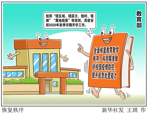 新華社北京8月20日電 記者20日從教育部獲悉,為做好2020年秋季學(xué)期教育教學(xué)和疫情防控工作,教育部日前印發(fā)通知,要求全面恢復(fù)教育教學(xué)秩序,科學(xué)精準(zhǔn)做好校園疫情防控,提升應(yīng)急處置能力。