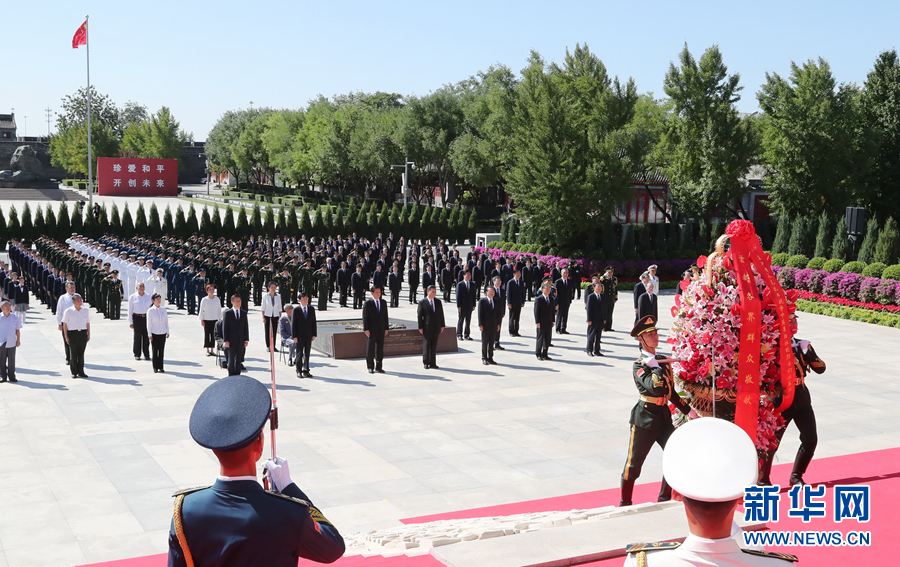 9月3日上午,習(xí)近平、李克強、栗戰(zhàn)書、汪洋、王滬寧、趙樂際、韓正、王岐山等黨和國家領(lǐng)導(dǎo)人來到中國人民抗日戰(zhàn)爭紀(jì)念館,出席紀(jì)念中國人民抗日戰(zhàn)爭暨世界反法西斯戰(zhàn)爭勝利75周年向抗戰(zhàn)烈士敬獻花籃儀式。 新華社記者 王曄 攝