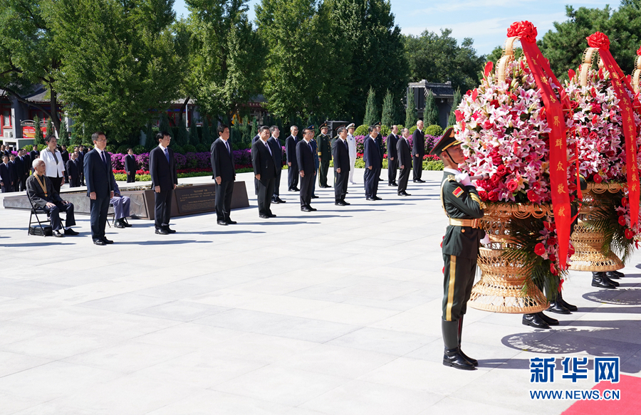 9月3日上午,習(xí)近平、李克強、栗戰(zhàn)書、汪洋、王滬寧、趙樂際、韓正、王岐山等黨和國家領(lǐng)導(dǎo)人來到中國人民抗日戰(zhàn)爭紀念館,出席紀念中國人民抗日戰(zhàn)爭暨世界反法西斯戰(zhàn)爭勝利75周年向抗戰(zhàn)烈士敬獻花籃儀式。 新華社記者 王曄 攝