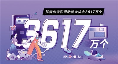 像張俊杰、潘仕學(xué)一樣在抖音上實(shí)現(xiàn)“靈活”就業(yè)的人還有很多。隨著越來越多的人全職或兼職以拍視頻為職業(yè),抖音目前已形成連接億萬用戶和創(chuàng)作者、商家的互利共生就業(yè)生態(tài)。據(jù)《報(bào)告》測算,過去一年,抖音整體帶動(dòng)的直接和間接就業(yè)機(jī)會(huì)達(dá)3617萬個(gè)。