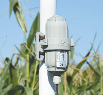 架設(shè)在河北定州市東留春鄉(xiāng)北邵村玉米田中的物聯(lián)網(wǎng)傳感器。史自強(qiáng)攝