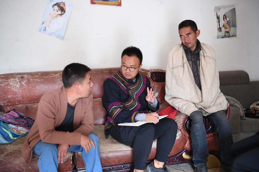 四川日報記者侯沖在彝族群眾家中采訪