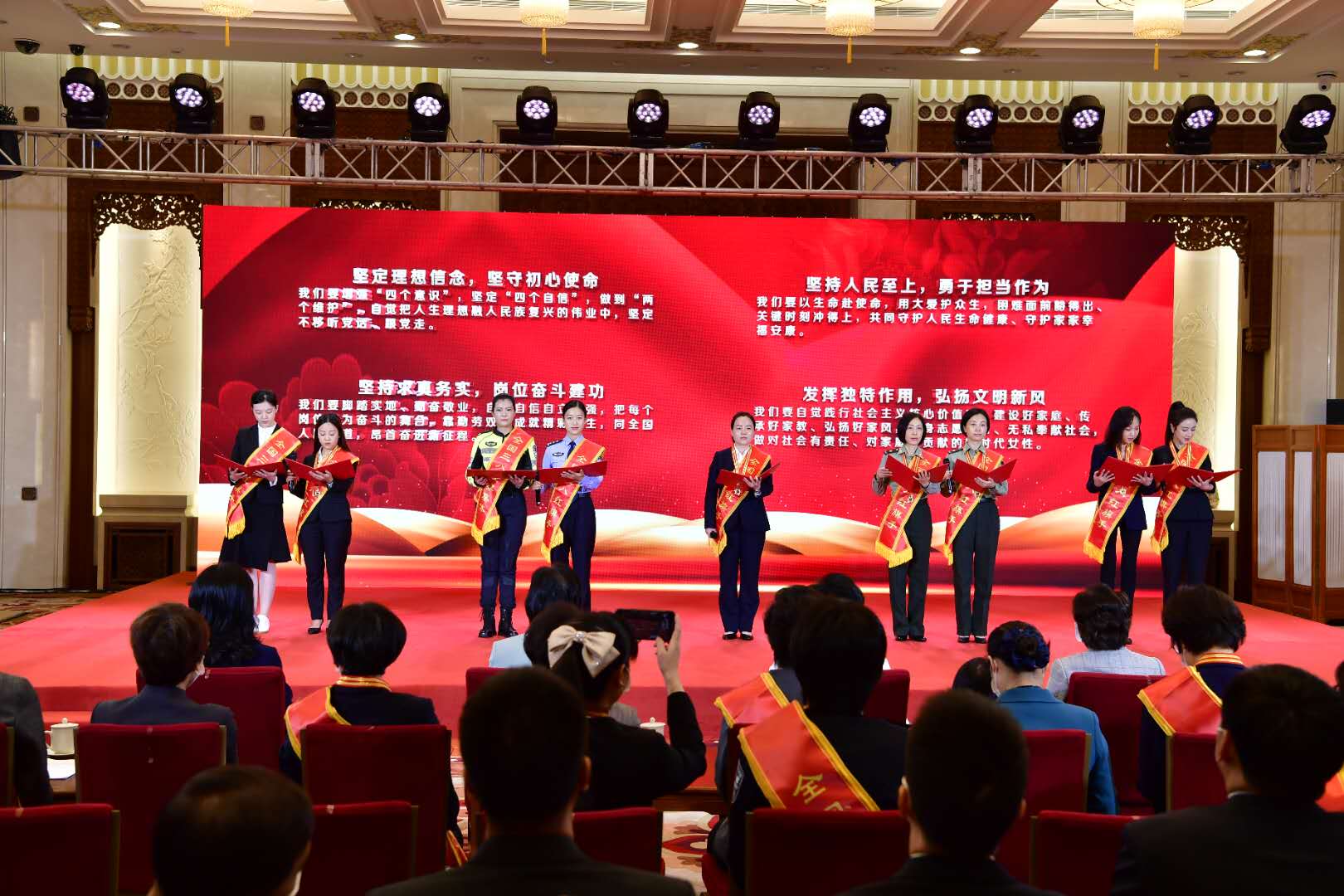 受表彰的抗疫全國(guó)三八紅旗手代表宣讀倡議書(shū)。