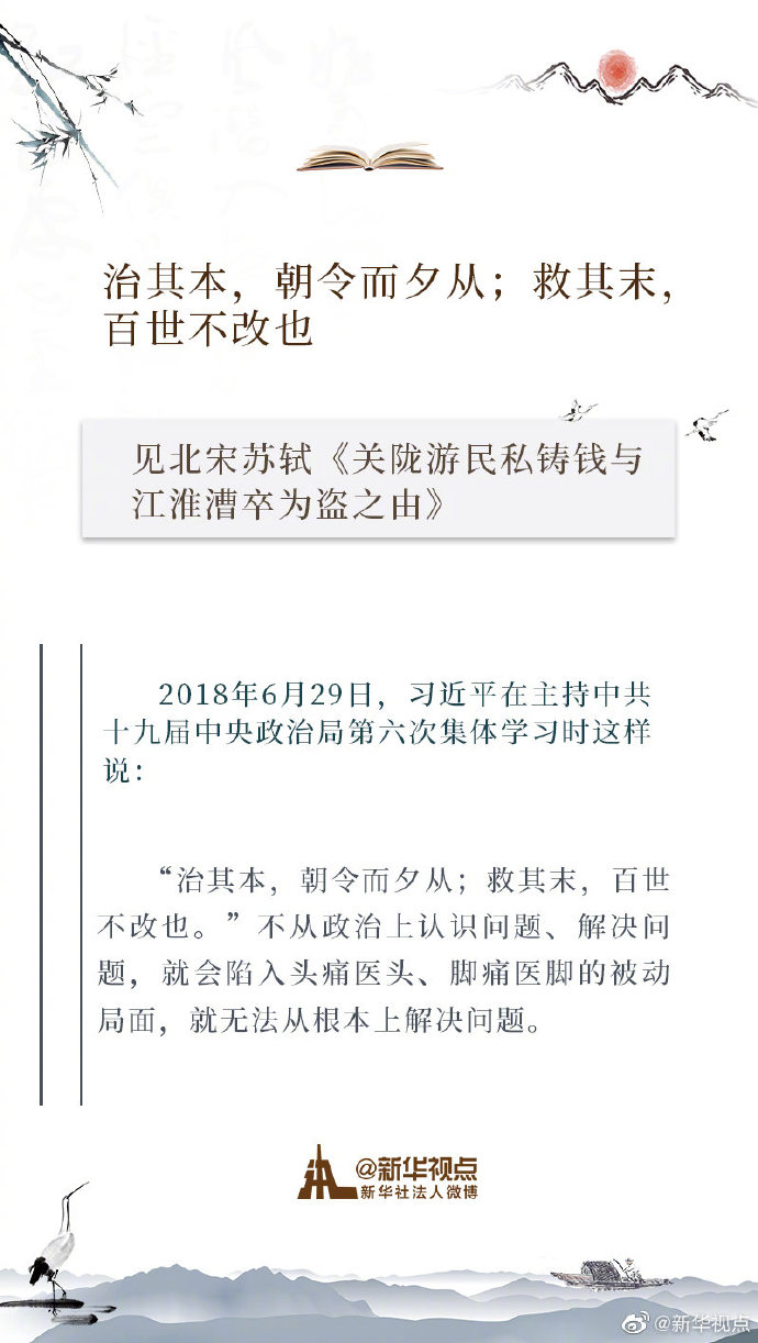 習近平總書記發(fā)表的一系列重要講話和文章中,精妙的典故信手拈來,廣博的引用貫通古今。從這些用典中,既可以追溯習近平新時代中國特色社會主義思想的源頭活水,又能在古為今用的創(chuàng)造性轉(zhuǎn)化中感受中華優(yōu)秀傳統(tǒng)文化的博大精深。