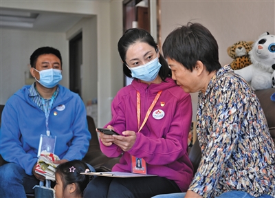 “您好,我們是奧運村街道國奧村社區(qū)第七次全國人口普查指導員杜慧婧和普查員婁洪勇,這是我們的工作證?!?0月17日上午,在國奧村社區(qū)一戶居民家門口,普查員用標準的“七人普”開場白“敲”開了住戶的家門。