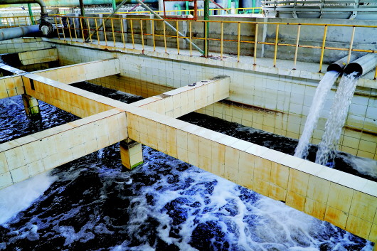 盛虹集團(tuán)2012年建成投運(yùn)印染廢水中水回用節(jié)能減排項(xiàng)目,日處理污水2萬噸,印染廢水中水回用率達(dá)到70%。本報(bào)記者許舜達(dá)攝