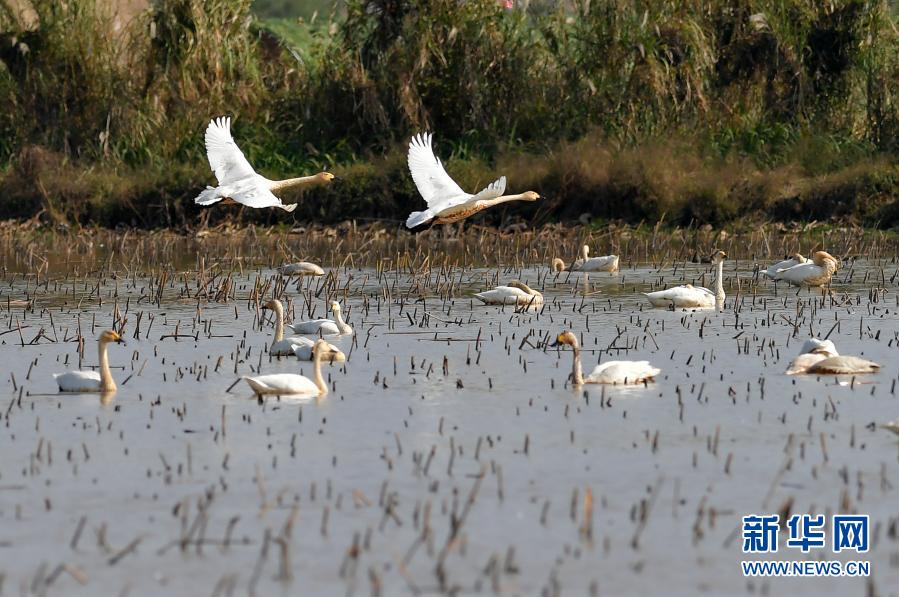 這是11月11日在湖南西洞庭湖國(guó)家級(jí)自然保護(hù)區(qū)拍攝的候鳥。新華社記者 陳思汗 攝