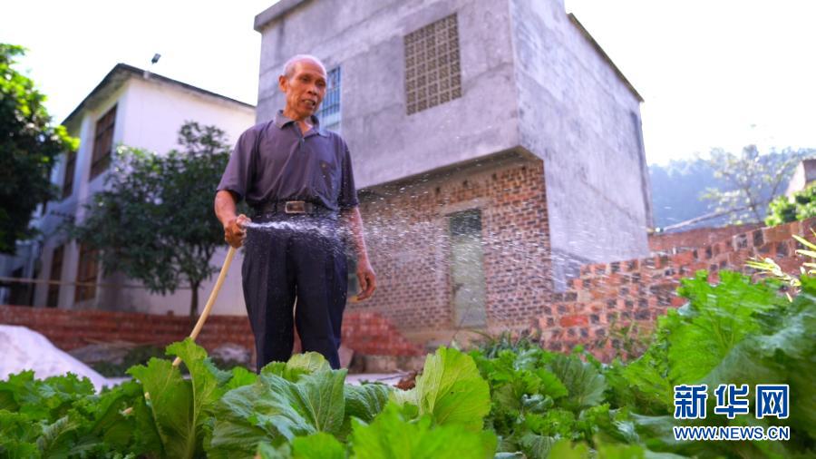廣西隆安縣實(shí)施跨區(qū)域集中連片供水工程后,一名隴選村村民用自來水給菜地澆水(11月12日攝)。新華社記者 楊馳 攝