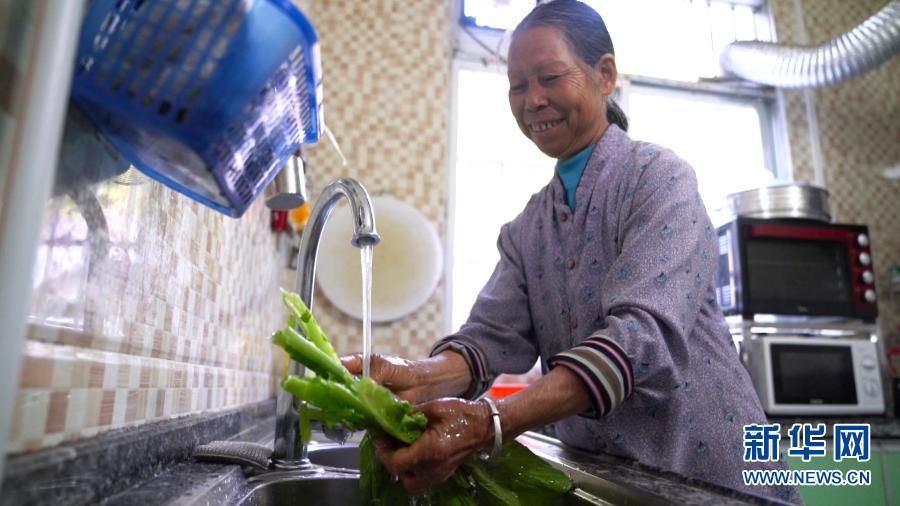 廣西隆安縣實(shí)施跨區(qū)域集中連片供水工程后,愛華村龍微屯的村民在家中用上了自來水(11月12日攝)。新華社記者 楊馳 攝