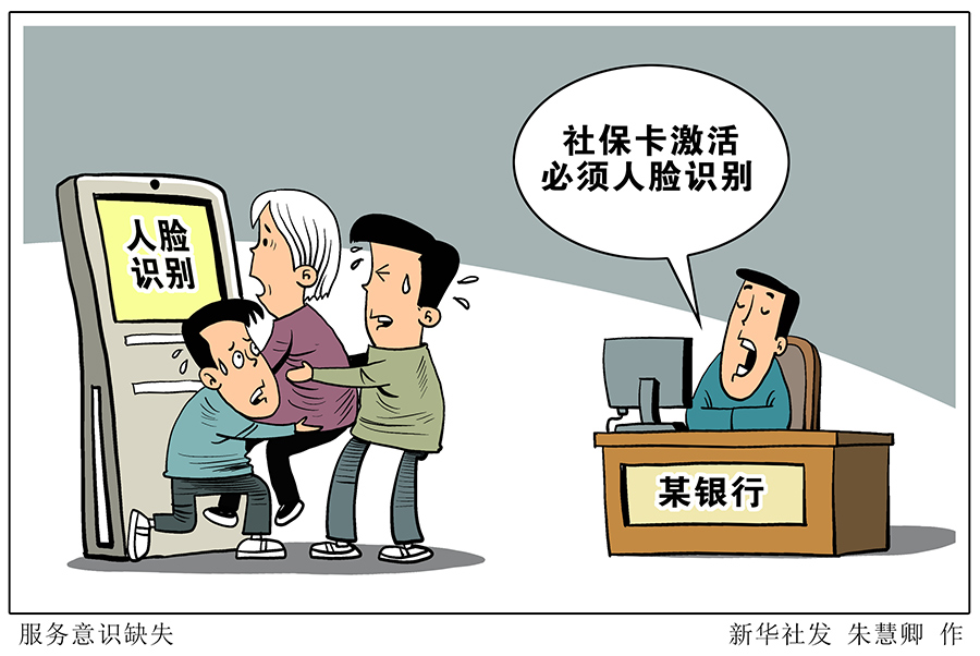 湖北廣水一名行動(dòng)不便的94歲老人為了激活社???,被親屬抬到銀行、抱起進(jìn)行人臉識(shí)別的視頻,近日在網(wǎng)上廣為傳播。銀發(fā)老人被抱起時(shí),瘦弱而困窘的身影,刺痛人心。社保卡本是便民利民之卡,如此激活,相關(guān)部門及單位應(yīng)當(dāng)反思。