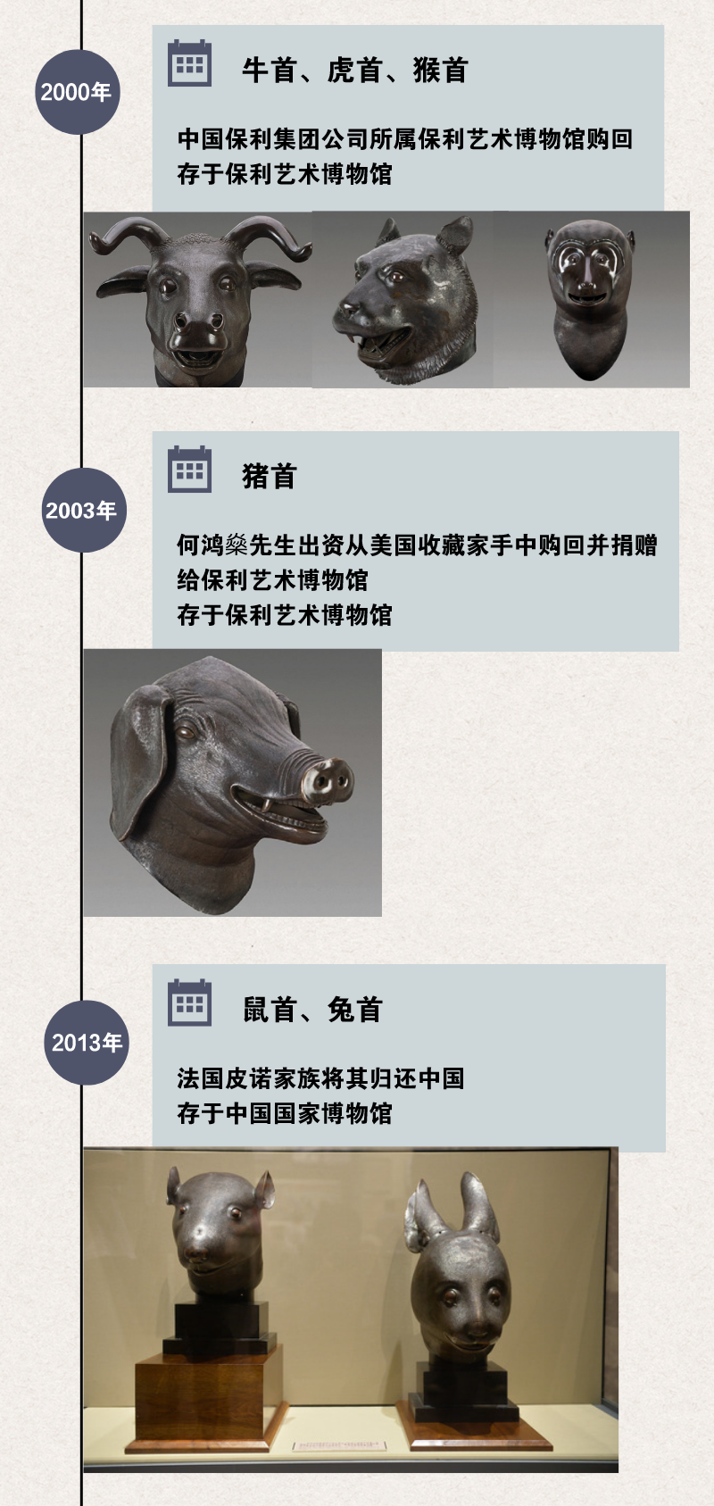 此前,已有6尊圓明園流失獸首銅像通過不同方式回歸祖國,分別存于中國國家博物館和保利藝術博物館。