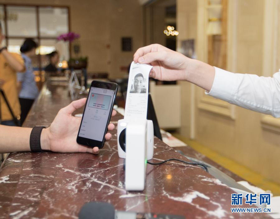 這是“微警認(rèn)證”身份認(rèn)證技術(shù)在辦理酒店入住時(shí)的應(yīng)用場(chǎng)景(2018年7月19日攝)。新華社發(fā)(廣州市公安局供圖)