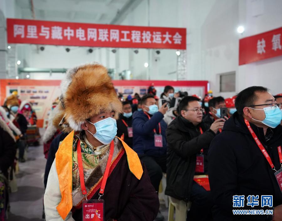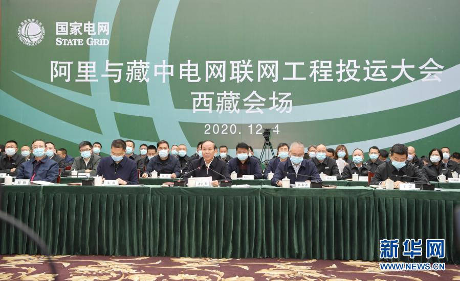 12月4日在拉薩拍攝的西藏阿里與藏中電網(wǎng)聯(lián)網(wǎng)工程投運(yùn)大會西藏會場。新華社記者 張汝鋒 攝