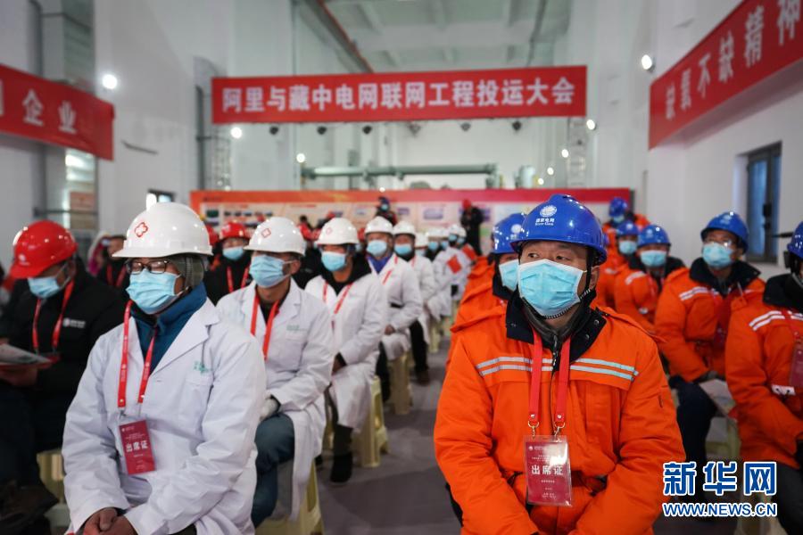 12月4日拍攝的西藏阿里與藏中電網(wǎng)聯(lián)網(wǎng)工程投運(yùn)大會霍爾220千伏變電站分會場。新華社記者 詹彥 攝