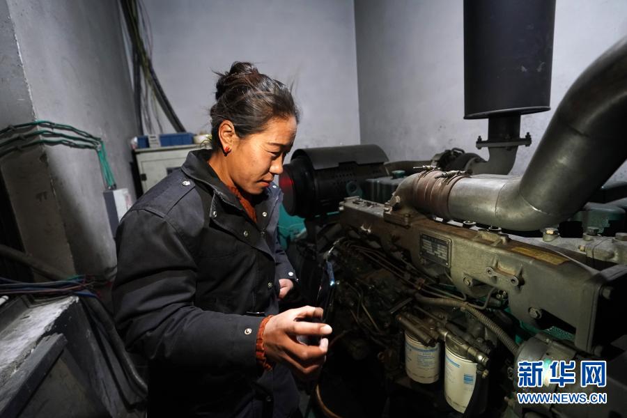 在西藏日喀則市薩嘎縣西部驛站大酒店,工作人員查看發(fā)電機(jī)運(yùn)行情況(11月27日攝)。新華社記者 詹彥 攝