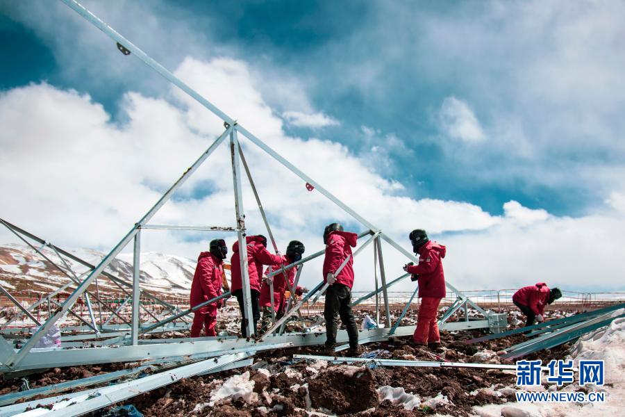 “施工人員服用保護(hù)心臟的藥,背著氧氣瓶上到山頂,工作時心跳一直保持在每分鐘120次以上,一個小時就得輪班下來?!弊T晉說,山頂?shù)奶鞖庾兓脽o常,有時晴朗,強(qiáng)烈的紫外線照得大家滿臉?biāo)?;有時一場大雪,有的工人會瞬間雪盲。