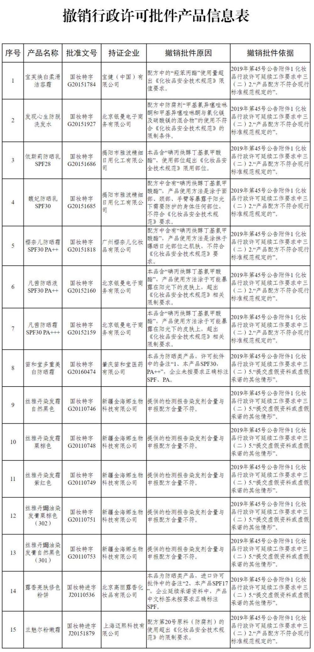 12月4日,國家藥品監(jiān)督管理局官網(wǎng)發(fā)布《國家藥監(jiān)局關于撤銷部分承諾制延續(xù)特殊用途化妝品行政許可批件的公告》如下: