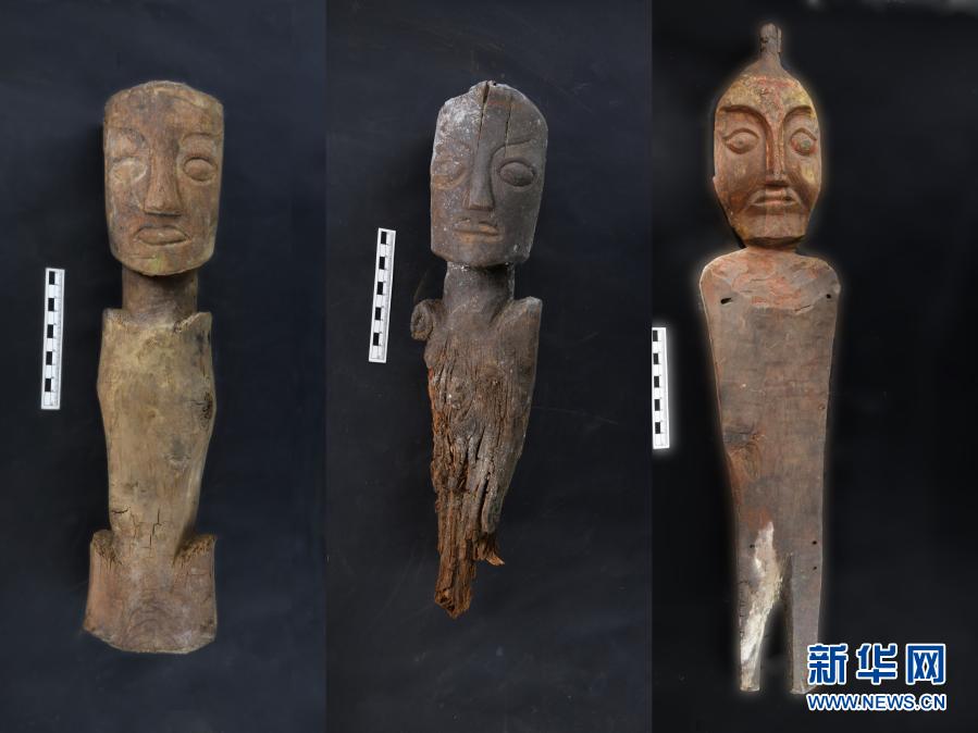 桑達(dá)隆果墓地出土的木俑(資料照片)。新華社發(fā)